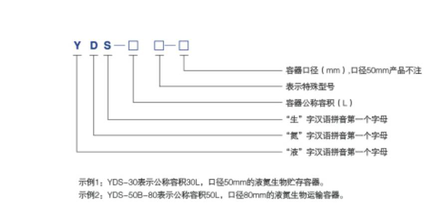 這些型號代表什么意義呢?以歐萊博液氮罐為例,YDS表明這是液氮生物容器,10代表液氮罐的容積為10升,后面沒有數字標識說明這個液氮罐的口徑為50mm;YDS-35B其中的B字母表示這個液氮罐為運輸型液氮罐;YDS-35-125最后面的數字表明這個液氮罐為125mm口徑。