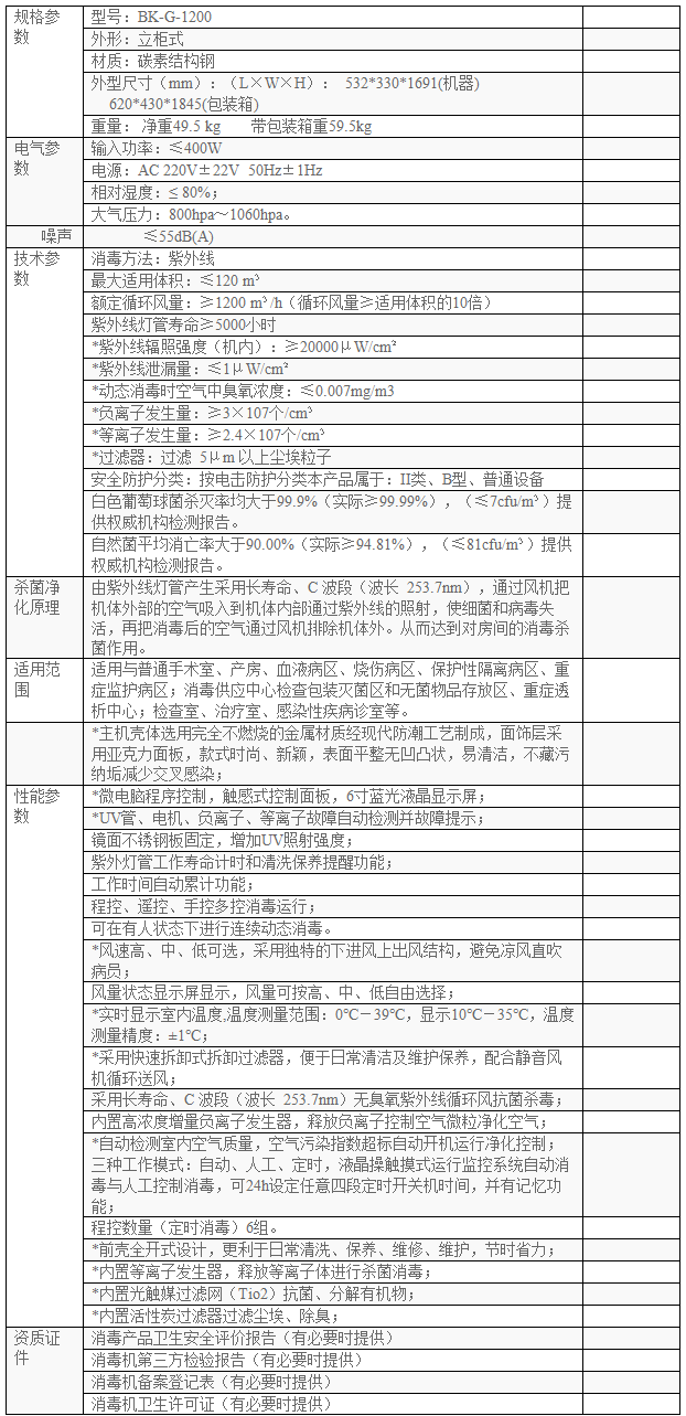 本機采用高強度型紫外線殺菌燈,負離子發生器,活性炭過濾消毒方式可用于有人在條件下的空氣消毒。